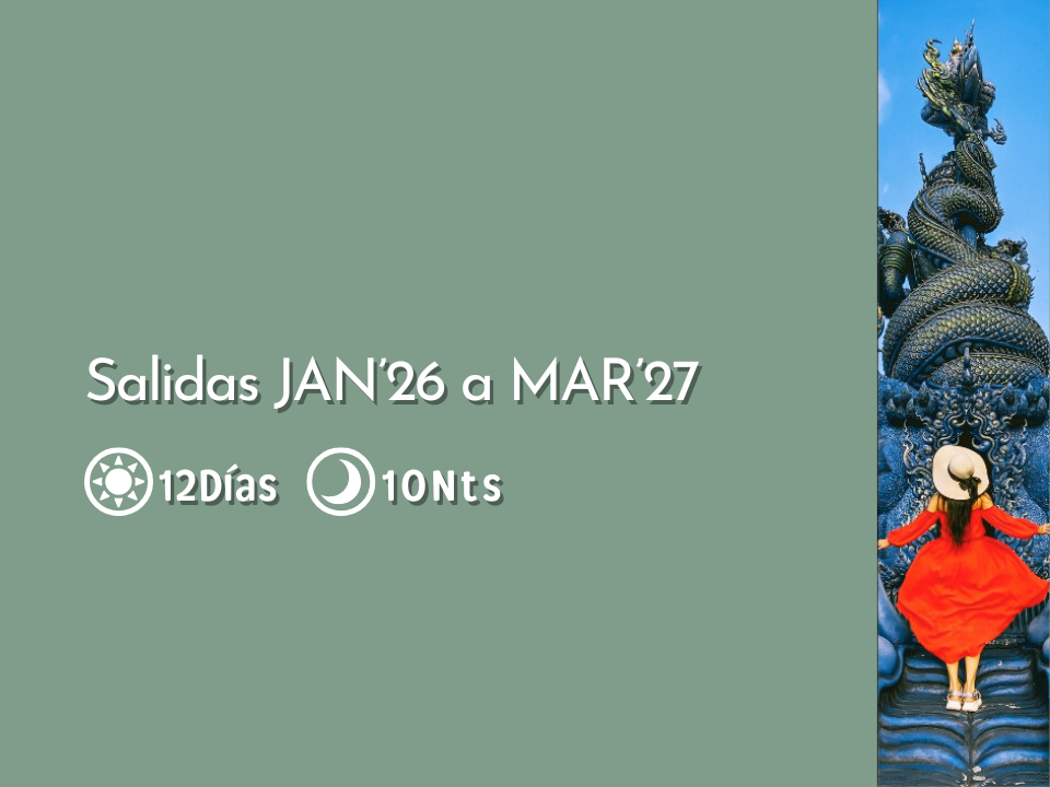 Embárcate en una aventura única que combina historia, cultura y paisajes fascinantes. Desde la vibrante Bangkok y los templos de Ayutthaya al encanto del norte en Chiang Rai y Chiang Mai, donde tradici&oa...